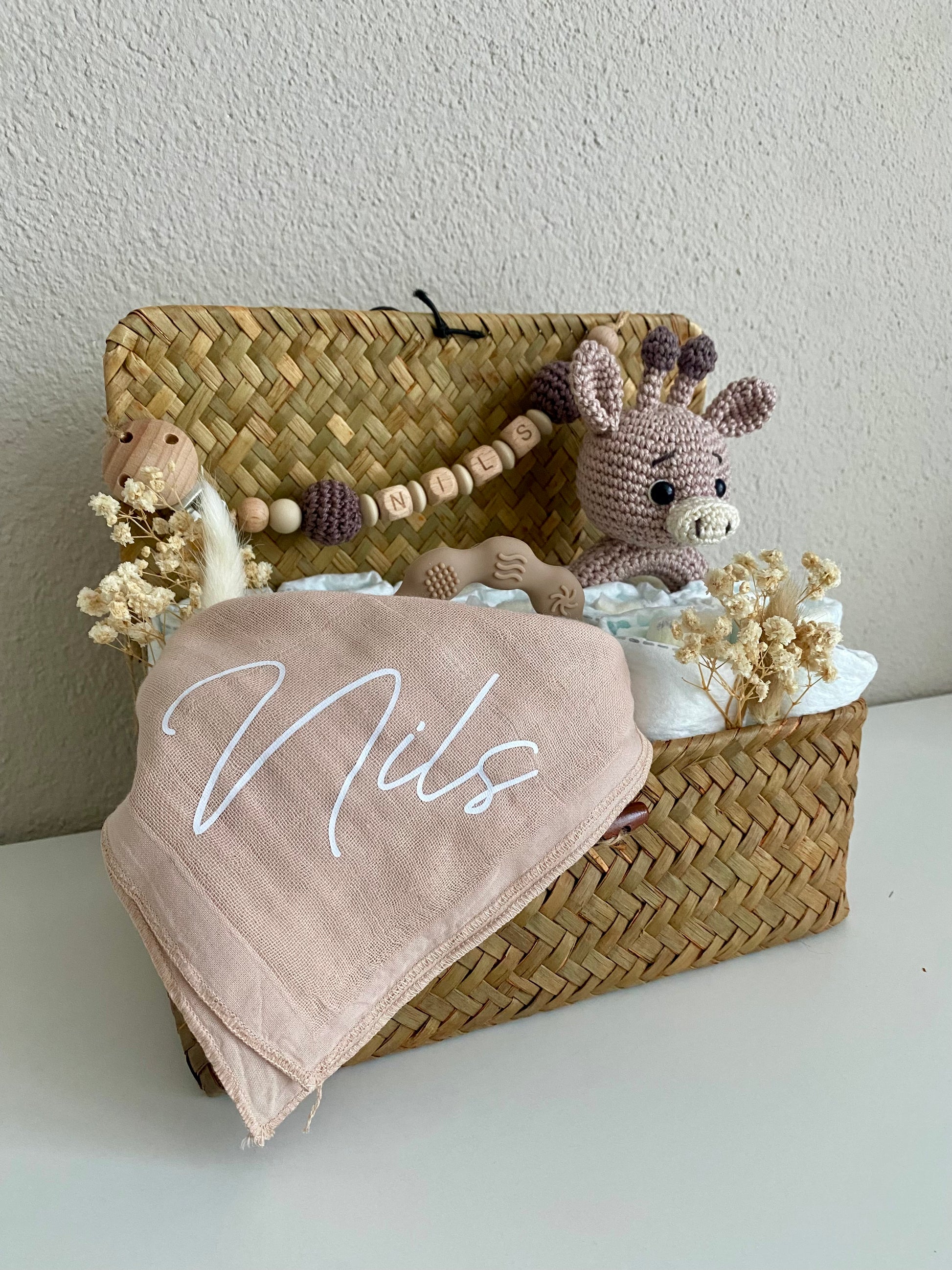 Mit Liebe handgemachte Artikel, welche personalisiert werden können. Das perfekte Geschenk zur Geburt, Babyshower oder für das eigene Kind. Diverse Artikel können mit dem Namen des Babys personalisiert werden (Schnullerkette & Spucktuch). Alle gehäkelten Artikel werden von mir selbst gehäkelt.